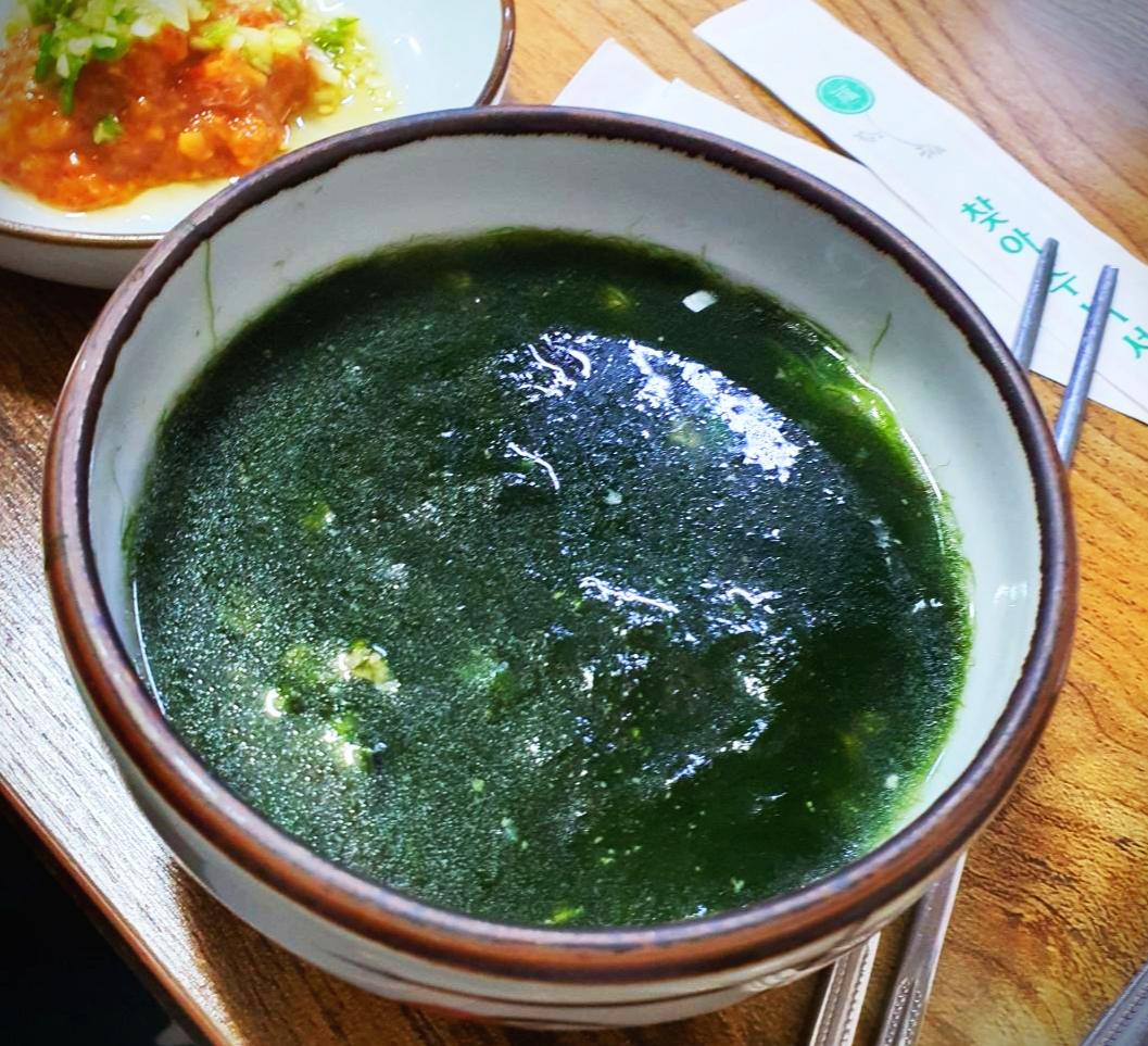 나오는 첫 메뉴는 매생이국입니다! 속을 달래주어 한잔하기 딱 좋게 만들어줍니다..