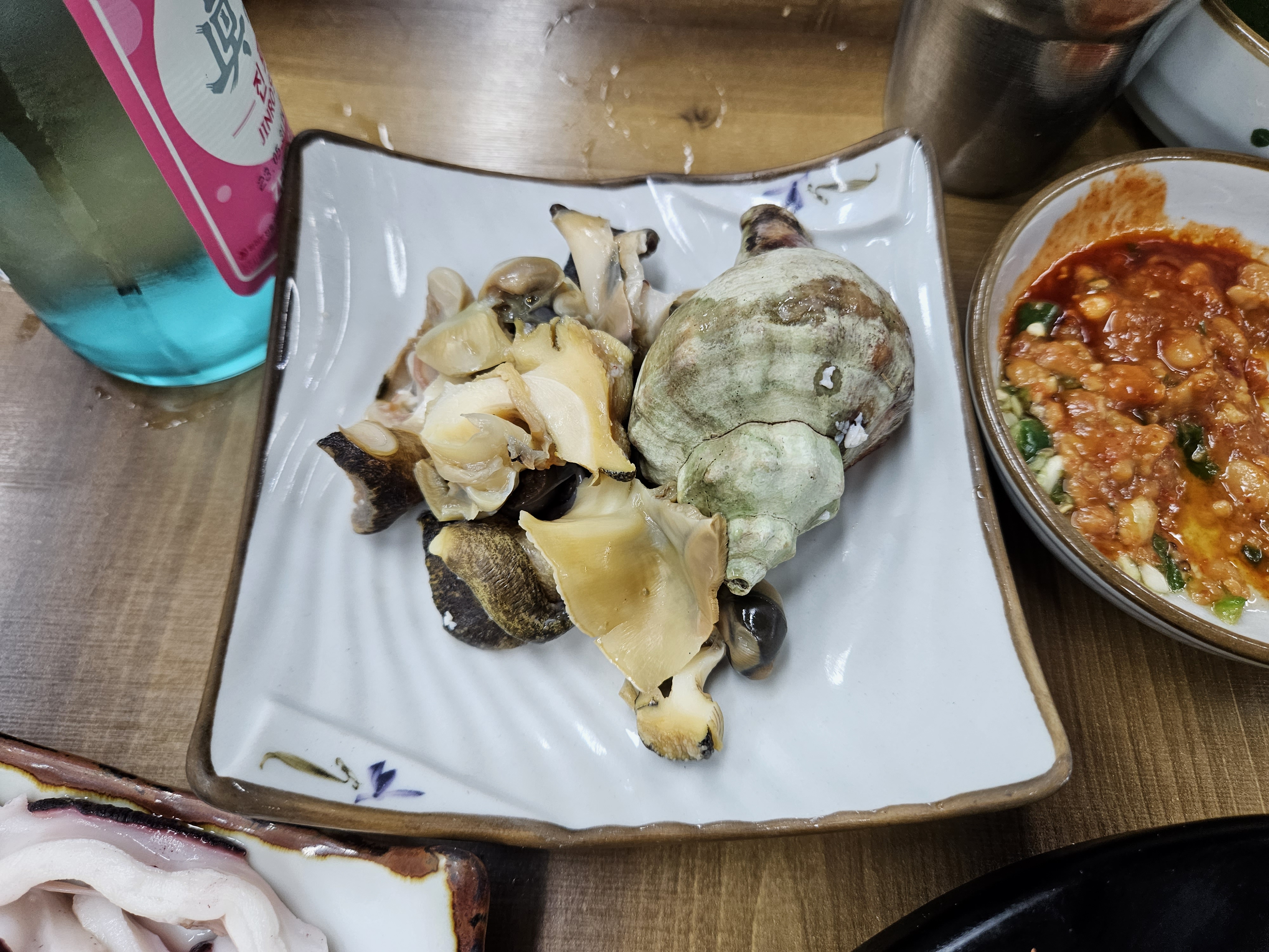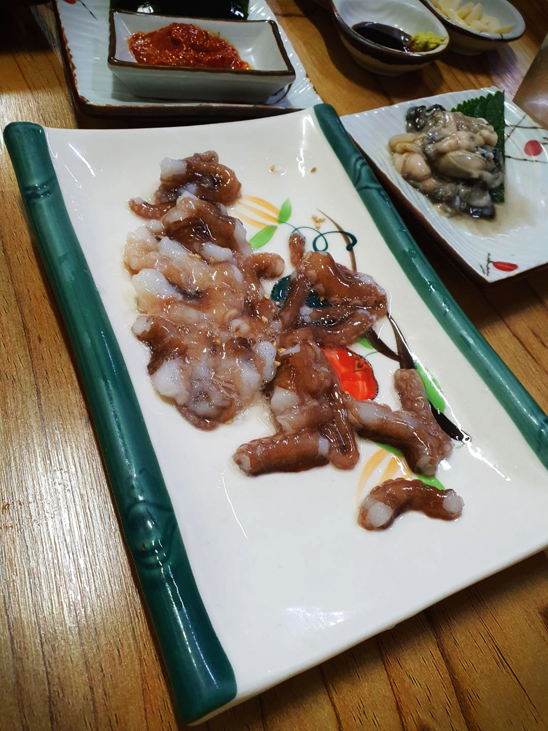 스끼다시로 나오는 아구수육이 상당한 퀄리티를 자랑합니다. 이 외에도 엄청난 비주얼을 자랑하는 생선구이가 있었는데 사진이 없군요.. 그리고 산낙지! 이것도 좀 먹다 찍어서(순식간에 젓가락이 막 날아오더라구요) 양이 좀 적습니다.