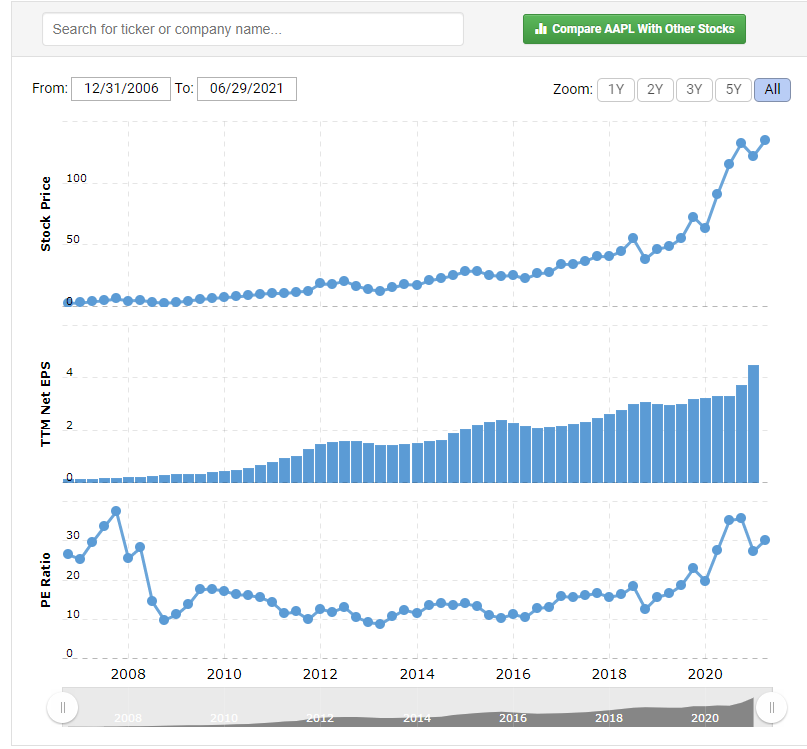 또한, EPS, P/E ratio 그래프를 제공하는데 아주 유용합니다.
